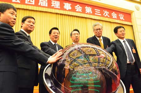王显政、黄玉治、李世明、梁嘉琨等领导触亮发光球,正式启动冀中能源杯·第三届寻找感动中国的矿工活动