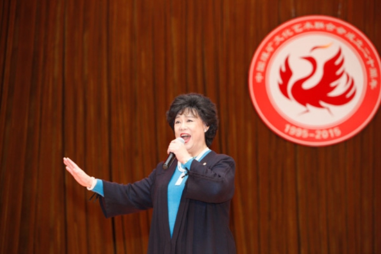 “乌金大奖”获得者、著名歌唱家邓玉华代表获奖者发表获奖感言,并现场演唱歌曲《情深谊长》