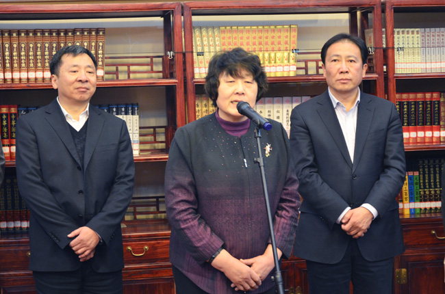 中国煤矿文化宣传基金会理事长、中国煤矿文联副主席庞崇娅在书画笔会交流活动中讲话