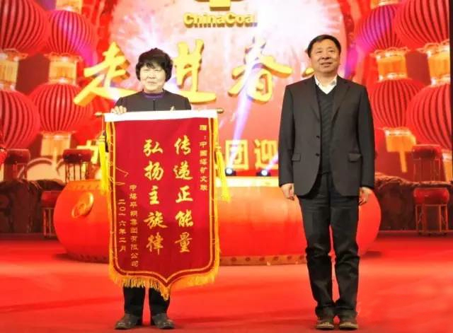 在演出开始前,刘勇代表中煤平朔集团公司向庞崇娅赠送了“传递正能量,弘扬主旋律”锦旗。刘俊代表中国煤矿文联作了讲话,并向平朔公司的全体职工及家属致以节日的问候。
