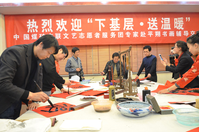 1月31日,由中国煤矿文联主办,中煤平朔集团公司承办的“走基层·送温暖”中国煤矿文联文艺志愿服务走进平朔活动在平朔矿区举行。此次活动由中国煤矿文化宣传基金会理事长、中国煤矿文联副主席庞崇娅带队,中国煤矿文化宣传基金会副理事长刘俊,中国煤矿文联副秘书长、《阳光》杂志社社长兼主编盛军,中国煤矿文联宣传处副处长辛凡忠和著名煤矿书法家马铭、陈彦丰、杨玉剑,画家陈思羽、呼玉忠、吕秀芹、仲立,著名相声演员连春建、张涛,青年歌唱演员孙国玉、田野等多位艺术家以及《中国艺术报》记者王雨檬,《中国煤炭报》记者孙宝福等参加志愿服务。