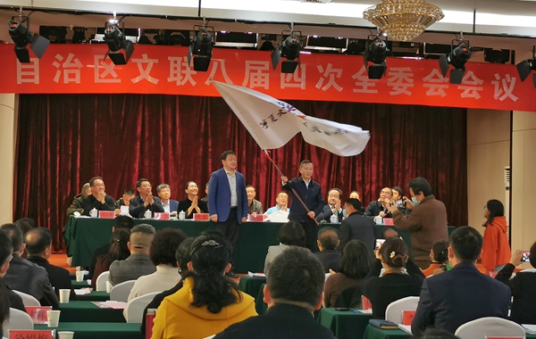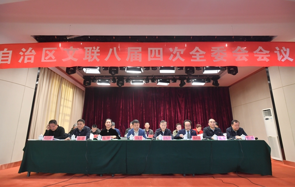 2021年3月5日,自治区文联八届四次全委会在银川召开。会议传达学习了有关会议精神、通报了全委会委员变更情况、表决通过了秘书长更替人选、成立了宁夏文艺志愿服务总队,自治区纪委监委驻宣传部纪检监察组组长王振升出席会议授旗并讲话。自治区文联党组书记、副主席崔晓华作题为《担当新使命 奋斗新征程 推动全区文艺事业高质量发展》的工作报告,对文联2020年的工作和“十三五”文艺工作取得的成绩做了全面的总结,就“十四五”文艺发展提出了构想,并对2021年工作做了部署。自治区文联主席杨洪涛主持会议。