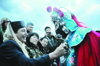 维吾尔族民间老艺人阿皮孜大叔说今年是他最幸福的一年。6月,他作为新疆和田市文工团的演员第一次进京,登上了魂牵梦绕的天安门城楼,还给首都观众带来了独具民族特色的大型歌舞《阗美四季》;两个月后,北京的艺术家便带着歌舞、魔术、杂技等节目走进他的家乡和田,为他们带来了长达3小时的演出。阿皮孜和在场3000余名观众生平第一次见到了精彩的“变脸”表演,魔术师的手仿佛借了神力让人捉摸不透,那满嘴直说鸟语的口技演员真的没借助任何道具吗?阿皮孜疑惑并快乐着:“和田大街上跑的公交车、我们下乡用的演出车全是北京送的,现在又带着艺术家给我们义务演出,北京待我们像亲人一样好。你们来一次,我们高兴很久。”