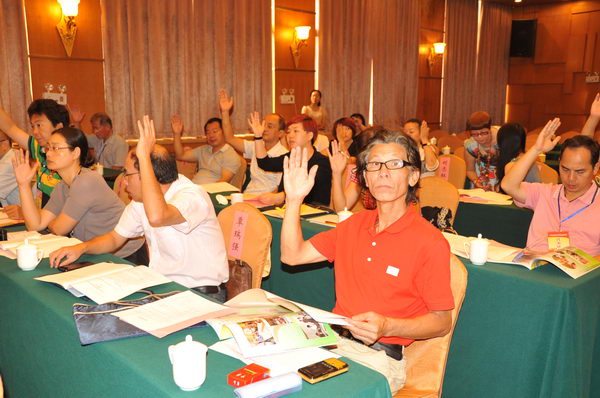 广西文艺志愿者协会第一届全体理事会议上,与会理事举手表决,选举第一届主席团。