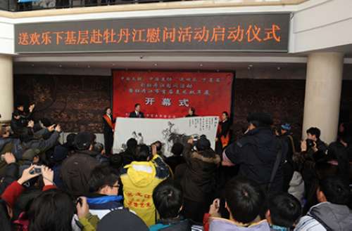 几天来,中国文联、中国美术家协会慰问团一行秉持文化惠民、文化为民、文化乐民的宗旨,不辞辛劳,长途跋涉,克服严寒,带着对牡丹江人民的深厚情谊,送美术文化于人民群众,种美术文化于基层之中,用艺术的形式慰问了牡丹江市人民群众,把温暖送给基层,把欢乐洒向民间,积极地推动了牡丹江市公共文化建设。美术家们与牡丹江当地美术工作者和美术爱好者积极交流,为牡丹江市广大美术工作者及爱好者带来了一次十分难得的学习机会,对于提高黑龙江省美术创作水平意义重大、影响深远。