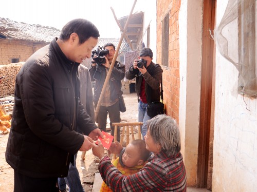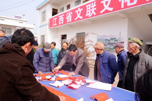 由数位知名书法家组成的文艺志愿服务队,在省书协主席毛国典组织下,现场为村民义务书协春联700余幅,给十里八村的乡亲送去节日的祝福。活动期间,曹杭副主席还带领省文联扶贫组走访慰问了困难群众、基层老党员,并赠送慰问金。