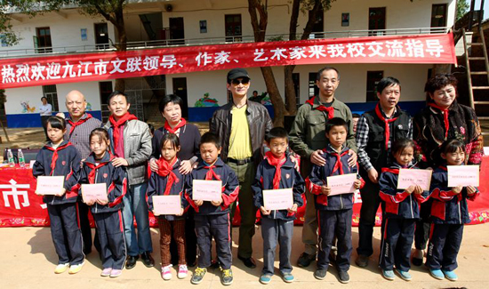 2013年初,文艺志愿服务活动在全国上下蓬勃开展。为大力弘扬和激发社会正能量,秉持文艺为民、文艺惠民、文艺乐民,有力倡导“奉献、友爱、互助、进步”的文艺志愿精神,江西九江市文联一手组建“九江市文艺志愿服务团”,一手筹划文艺支教活动。与九江市文联扶贫结对的都昌县周溪镇马山村交通偏僻,农民群众收入普遍较低,单亲孩子不少。得知马山村有不少孩子家庭生活十分困难的情况后,九江市文联研究决定,在作家艺术家中进行倡议,向贫困孩子奉献爱心,组织开展一次作家、艺术家与贫困学生结对助学活动。
