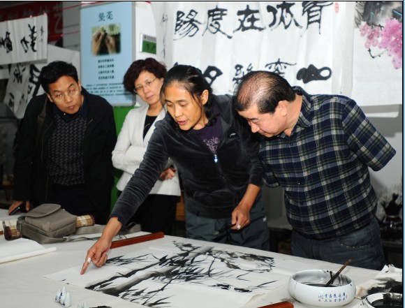 10月22日,由省残联、省文联联合主办的“扶助残疾人 共圆中国梦”文化助残活动在西安碑林区残疾人创业孵化基地举行。省文联党组成员、专职副主席兼秘书长黄道峻,省残联巡视员明建宇,西安市残联党组副书记、理事长李忠良,碑林区区委书记董劲威等领导出席了开幕式。碑林区区长卢光文致辞,省美协副主席宋亚平代表艺术家讲话。省书协常务副主席兼秘书长王改民、省书协常务副主席魏良、省美协顾问胡明军、省美协副主席石丹、省花鸟画研究会会长樊昌哲、陕西书画艺术研究院名誉院长杨禄魁以及残疾人书画家杜振华、刘正年等18位书画艺术家参加了本次活动。开幕式由碑林区副区长林娣主持。