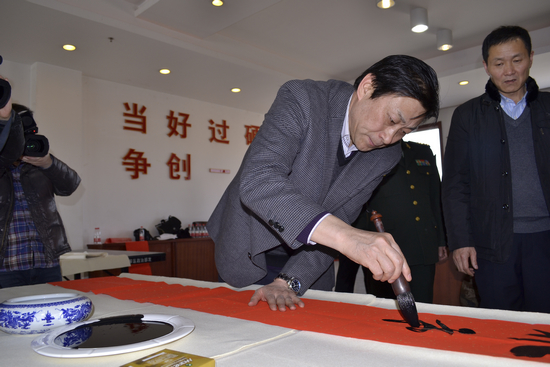 新春的脚步声清晰可闻,浓浓的年味儿扑面而来。2月6日(农历腊月二十六),由山西省政协常委、省文联党组书记、省书协副主席张根虎带队,山西省文联、山西大众书画院与山西省书法家协会、山西省美术家协会、山西省摄影家协会组成的“送欢乐下基层书画摄影进军营”慰问团一行30人,带着党和政府的温暖来到太原市国防教育训练中心进行慰问和文化服务,为这里的官兵们送上一份丰富的节日文化大餐,受到广大官兵的热烈欢迎。