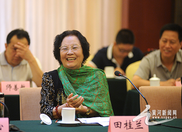 山西省纪念梅花奖创办30周年暨人才建设座谈会在太原召开,图为艺术家田桂兰发言