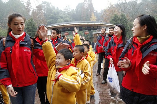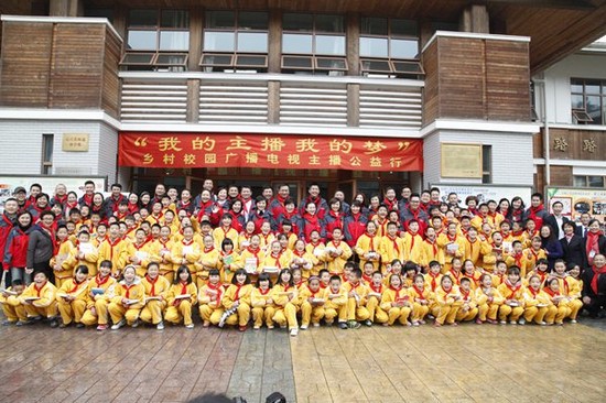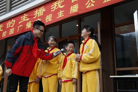 活动中,志愿服务一行先后向学校赠送了《弟子规》朗诵作品光碟,以及主持人提前录制的小学课文朗读光碟。全体主持人还向孩子们赠送了签名儿童读物。在操场,主持人和孩子们齐声朗诵《弟子规》选段,气氛热烈。来自我省四川电视台、各地市州电视台的一线主持人们现场与孩子们交流,受到孩子们的热烈欢迎。省“十佳”候选人之一、中央电视台“挑战主持人”冠军、四川电视台“中国藏歌会”主持人杨林还通过游戏互动的方式,激发孩子们对语言、语音的兴趣,用趣味的形式,传播了发音、朗读等技巧和知识。