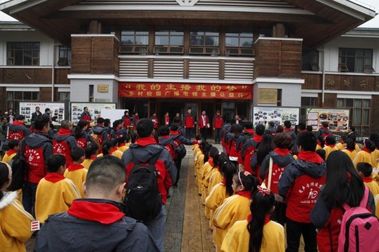 主持人们还在学校的校园广播站,对孩子们做了“自我介绍”,留下了自己“最想说的话”,传递梦想和希望。省“十佳”候选人之一、四川电视台《四川新闻》主持人安丽鼓舞孩子们说:“同学们,今天我们来到这里,希望帮助你们实现‘学习梦’,和你们建立友谊,成为长久的朋友。未来属于对成功充满渴望的人,今天所做的一切相加就是未来!”通过广播,主持人们的声音传递到学校的每一个角落,在孩子们的心灵深处回荡。