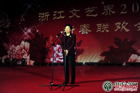浙江省委常委、宣传部长葛慧君出席并致辞。她充分肯定了2013年文艺界所做的工作和所取得的丰硕成果。寄语广大文艺和文艺工作者在浙江“五水共治”“五措并举”“中国梦想·美丽浙江”的实践中唱响时代主旋律;肩负使命,坚持正确的导向,宏扬核心价值观,提供更多的精神产品;心系人民、服务大众,投身公共文化服务体系建设,让更多的文艺走向基层群众;在马年里以一马当先的担当精神,马不停蹄的创作干劲,为浙江文艺的繁荣再立汗马功劳。