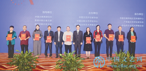 广东省文联党组副书记、专职副主席吴华钦,中共中山市委常委、宣传部部长林锐熙为入选“优秀文艺创新案例”和“重点文艺研究课题”单位代表颁发证书