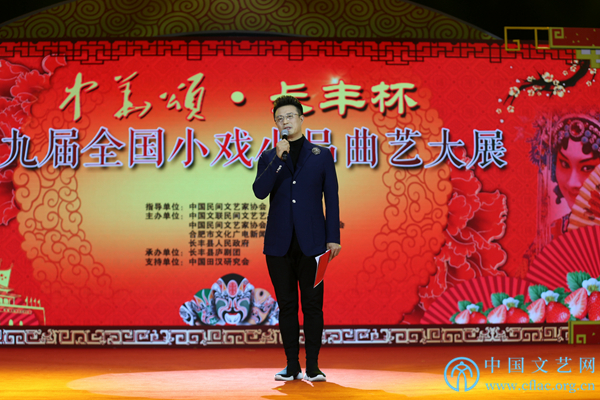 11月12日,由中国民间文艺家协会指导,中国文联民间文艺艺术中心、中国民间文艺家协会民间戏曲艺术委员会、合肥市文化广电新闻出版局和长丰县人民政府共同主办的“中华颂·长丰杯”第九届全国小戏小品曲艺大展在安徽省合肥市长丰县开幕。图为中国广播电视金话筒奖获得者、原央视著名主持人白燕升主持开幕式文艺演出。中国文艺网 刘青摄