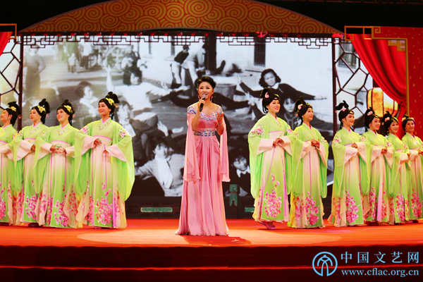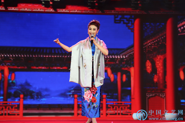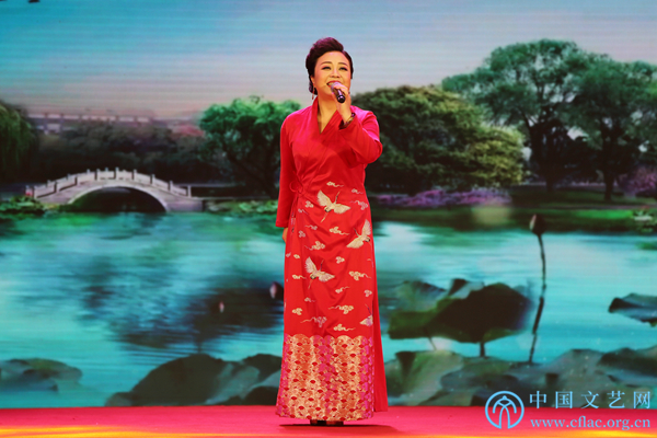 11月12日,由中国民间文艺家协会指导,中国文联民间文艺艺术中心、中国民间文艺家协会民间戏曲艺术委员会、合肥市文化广电新闻出版局和长丰县人民政府共同主办的“中华颂·长丰杯”第九届全国小戏小品曲艺大展在安徽省合肥市长丰县开幕。图为军旅歌唱家万林媚演唱黄梅歌《美江南》。中国文艺网 刘青摄