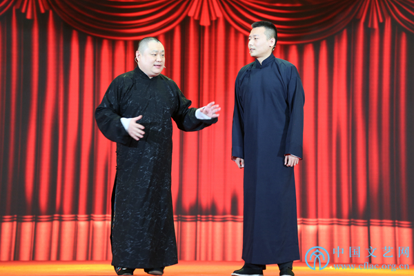 11月12日,由中国民间文艺家协会指导,中国文联民间文艺艺术中心、中国民间文艺家协会民间戏曲艺术委员会、合肥市文化广电新闻出版局和长丰县人民政府共同主办的“中华颂·长丰杯”第九届全国小戏小品曲艺大展在安徽省合肥市长丰县开幕。图为青年相声演员、上海品欢文化艺术总监、喜剧明星金岩,著名戏曲曲艺活动家、国家一级演员马春然表演相声《欢天喜地》。中国文艺网 刘青摄