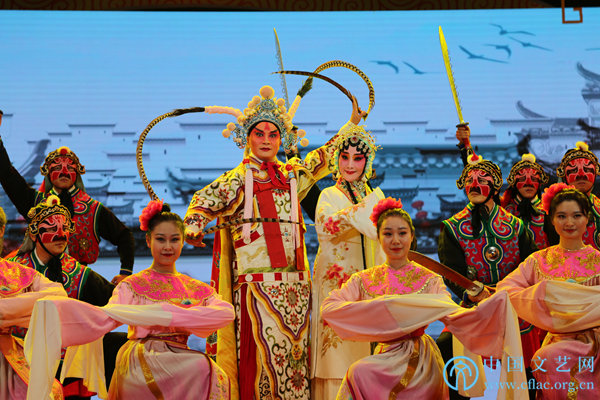 11月12日,由中国民间文艺家协会指导,中国文联民间文艺艺术中心、中国民间文艺家协会民间戏曲艺术委员会、合肥市文化广电新闻出版局和长丰县人民政府共同主办的“中华颂·长丰杯”第九届全国小戏小品曲艺大展在安徽省合肥市长丰县开幕。图为安徽省徽京剧院,中国戏剧梅花奖获得者、国家一级演员王丹红、汪育殊表演徽剧《徽风皖韵》。中国文艺网 刘青摄