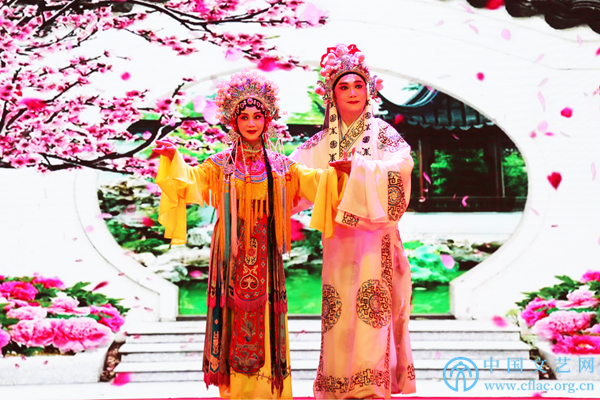 11月12日,由中国民间文艺家协会指导,中国文联民间文艺艺术中心、中国民间文艺家协会民间戏曲艺术委员会、合肥市文化广电新闻出版局和长丰县人民政府共同主办的“中华颂·长丰杯”第九届全国小戏小品曲艺大展在安徽省合肥市长丰县开幕。图为国家一级演员孙绳骥、郁柳表演庐剧《花园扎枪》选段“春三月鸟语花香”。中国文艺网 刘青摄