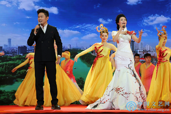 11月12日,由中国民间文艺家协会指导,中国文联民间文艺艺术中心、中国民间文艺家协会民间戏曲艺术委员会、合肥市文化广电新闻出版局和长丰县人民政府共同主办的“中华颂·长丰杯”第九届全国小戏小品曲艺大展在安徽省合肥市长丰县开幕。图为中国音乐金钟奖获得者、藏族青年男高音歌唱家、国家一级演员孔庆学,布朗族青年歌唱家、中国著名声乐教育家金铁霖教授硕士研究生张晓娇演唱歌曲《养人的地方》。中国文艺网 刘青摄