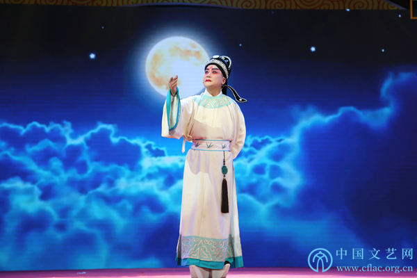 11月12日,由中国民间文艺家协会指导,中国文联民间文艺艺术中心、中国民间文艺家协会民间戏曲艺术委员会、合肥市文化广电新闻出版局和长丰县人民政府共同主办的“中华颂·长丰杯”第九届全国小戏小品曲艺大展在安徽省合肥市长丰县开幕。图为中国戏剧梅花奖获得者、安徽省黄梅剧院国家一级演员孙娟、余顺表演黄梅戏名段《十五的月亮为谁圆》。中国文艺网 刘青摄