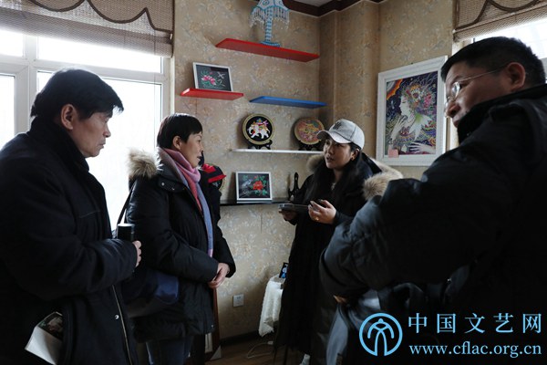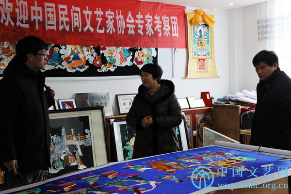 民间文艺学者一行调研青海省非遗堆绣传承人乔应菊的堆绣技艺。中国文艺网 白伟 摄
