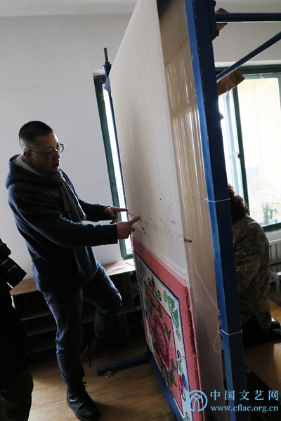 青海索琳手工毯运营负责人杨韶鹏介绍手工丝毛挂毯编织技艺。中国文艺网 白伟 摄