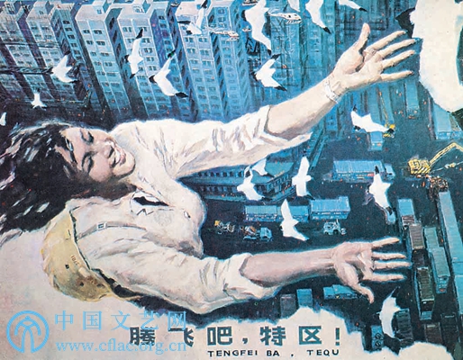 第三板块聚焦改革开放以来,党领导人民勇闯新路、大胆探索取得的辉煌成就。广东是改革开放的排头兵、先行地、实验区,广东美术得风气之先,走变革之路,领时代之新,从内容到技法上都带来一番新气象。潘鹤的《开荒牛》,梁照堂、李醒韬的《腾飞吧,特区!》,何克敌的《特区的正午》,郑国伟、郭兰莹、孙峰的《时间就是金钱效率就是生命》,于长江、陈嵘、张跃的《画说深圳》,陆声设的《中国股票》等展出作品以浓墨重彩记录了时代的足迹,讴歌了拼搏争先的时代精神。