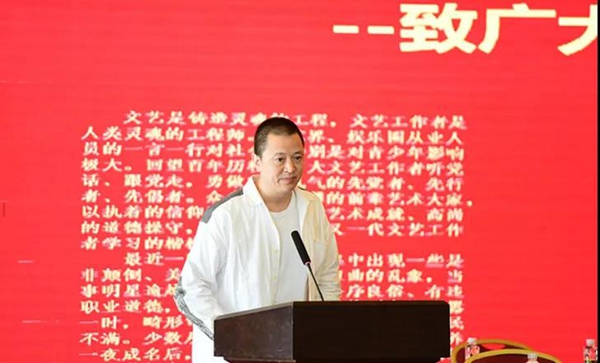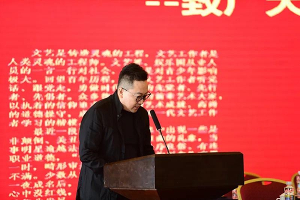 中国戏剧梅花奖获得者,海南省戏剧家协会副主席符传杰宣读《修身守正 立心铸魂——致广大文艺工作者倡议书》