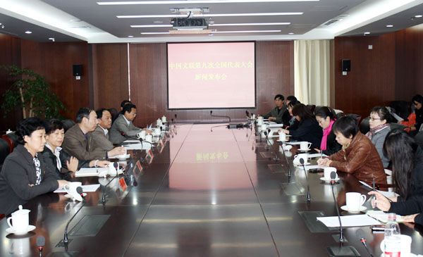 11月9日,中国文联第九次全国代表大会新闻发布会在中国文艺家之家举行。图为发布会现场。中国文联网 余宁 摄