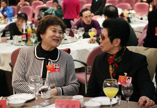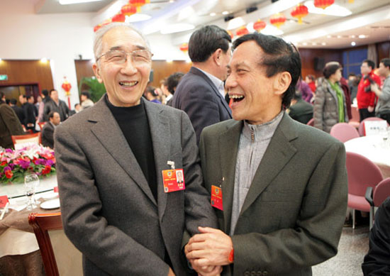 3月2日,2012年文艺界全国人大代表全国政协委员联谊会在京举行。图为文艺界代表委员亲切交谈。中国文艺网 孟祥宁 摄