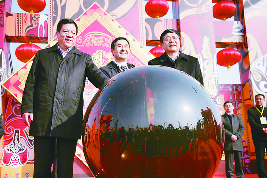 白阿莹、罗杨、唐俊昌共同按启吉祥彩球