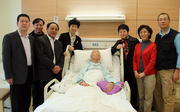 于老听闻赵实同志亲切的问候,虽口不能言,但面露笑容,流露出内心高兴。在大家退出病房之后,于老又示意家人将大家唤回,再次表达对中国文联的感谢。