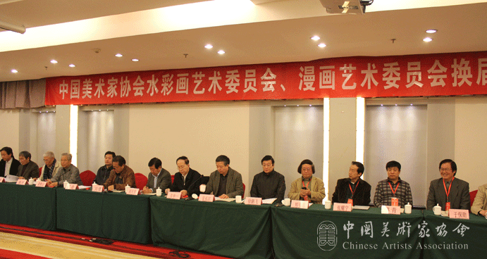 会上,吴长江宣读《中国美术家协会关于第四届水彩画艺术委员会成员的聘任决定》和《中国美术家协会关于第四届漫画艺术委员会成员的聘任决定》,左中一、刘大为向受聘委员颁发了聘书,左中一、刘大为、吴长江、诸迪、徐鹏飞分别在会议上致辞。