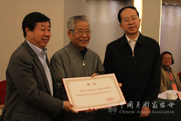 左中一书记、刘大为主席为水彩艺委会名誉主任黄铁山颁发聘书