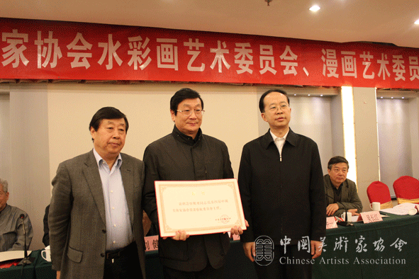 左中一书记、刘大为主席为水彩艺委会主任诸迪颁发聘书