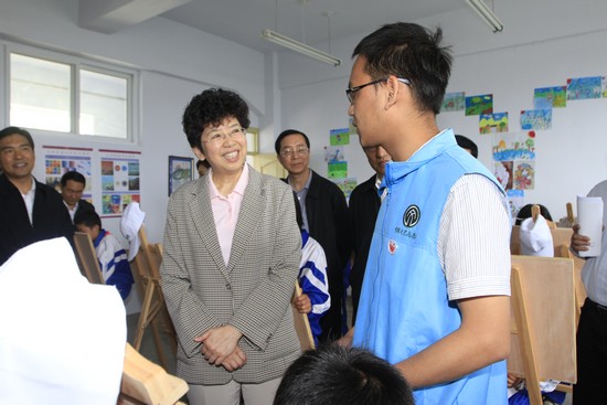 中国文联党组书记、副主席赵实与马街小学文艺支教志愿者交谈 中国文艺网 白伟 摄