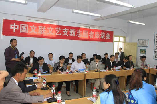 中国文联文艺志愿服务团一行与文艺支教志愿者座谈 中国文艺网 白伟 摄