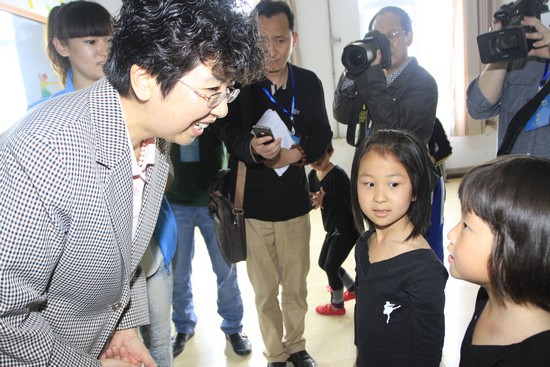 中国文联党组书记、副主席赵实与中国文联文艺支教学校马街小学的学生亲切交谈 中国文艺网 白伟 摄