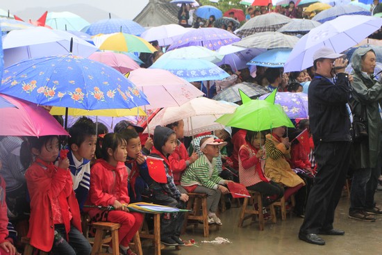 雨中村民观看艺术家演出的热情不减 中国文艺网 白伟 摄