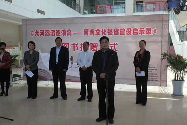 此次捐赠活动,《中国艺术报》社、河南省委宣传部共向河南文艺界捐赠《大河滔滔逐浪高——河南省文化强省建设启示录》图书1万册。