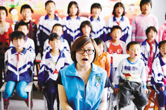 文艺支教志愿者周可欣在甘肃陇南教孩子唱歌