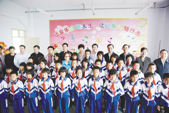 4月28日,中国文联党组书记、副主席赵实和中国曲协主席、中国文学艺术基金会副理事长姜昆在甘肃陇南马街小学亲切看望正在上艺术课的孩子们。