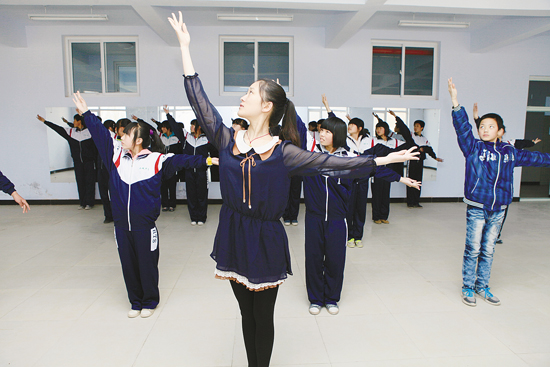文艺支教志愿者王菲在河北丰宁教孩子跳舞