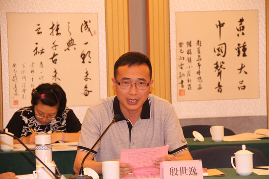 中共青岛城阳区区委常委、宣传部部长殷世逸向参会专家、领导介绍情况 孟祥宁 摄