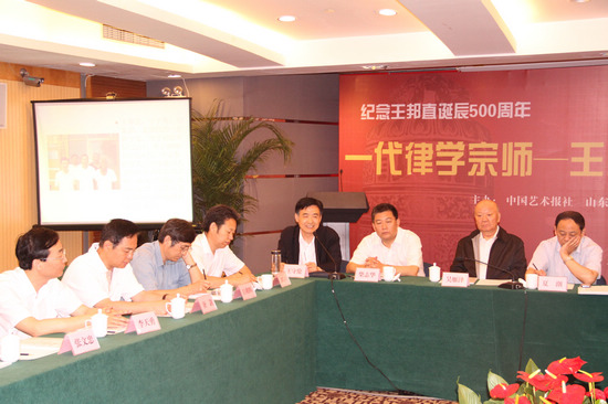 由中国艺术报社、山东省音乐家协会、河北省音乐家协会联合主办的“一代律学宗师—王邦直学术思想研讨会”近日在北京梅地亚中心举办。中国文联党组成员、书记处书记夏潮,中国文联副主席、中国音协分党组书记、著名作曲家徐沛东,中国艺术报社社长、中国文联文艺资源中心主任向云驹,中国文联原副主席、著名歌唱家吴雁泽,山东省政协原副主席、中国水和农民问题专家李殿魁,中国音协分党组成员副秘书长王建国、田晓耕,原中国音乐研究所所长、著名音乐学专家、博士生导师乔建中,山东省文联副主席、省音协主席张桂林,河北省文联副主席柴志华,河北省音协常务副主席白朝晖,山东省音协副主席、书法家、潍坊学院院长王守伦,山东省音协副主席、作曲家、高级编辑刘新海,青岛市城阳区区委常委、宣传部部长殷世逸,王邦直族人青岛市城阳区惜福镇小庄社区党支部书记王修训等专家、领导参与了研讨会系列活动。
