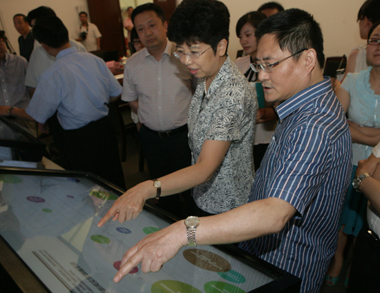 赵实一行首先参观了中国文联文艺资源中心多功能数据采播厅,观看和体验了中国文联大事记互动展示系统、优秀作品演示系统、影视记录作品演示系统、文艺新闻实时数据系统等,并对这些系统的主要内容、技术支撑、采集方式等进行了详细了解。