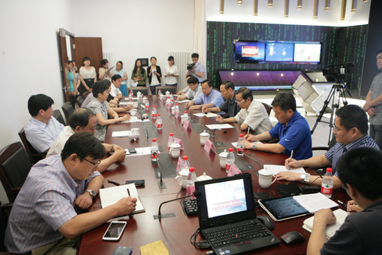 与会领导听取中国艺术报社社长、中国文联文艺资源中心主任向云驹作文艺资源中心项目汇报 孟祥宁摄