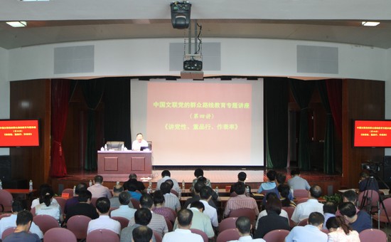 8月23日,中国文联党的群众路线教育专题讲座第四讲开讲。中央纪委监察部信访室原正局级副主任、中国纪检监察学院兼职教授王焕庚作了题为《讲党性、重品行、做表率》的讲座。中国文联党组书记、副主席赵实,中国文联党组副书记、副主席李屹,文联各团体会员代表,机关各部室、各直属单位负责人和干部职工代表聆听了讲座。讲座由李屹主持。