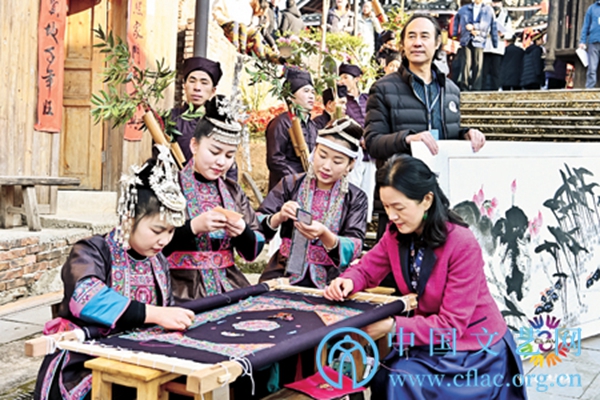2019年12月,中国文艺志愿者协会走进广西三江侗族自治县,开展“我们的中国梦”——文化进万家活动,帮助当地百姓传承发扬侗族刺绣技艺。